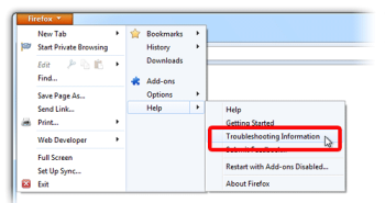 - از منوی بالای صفحه، بر روی Help کلیک کرده و گزینه Troubleshooting Information را انتخاب کنید.